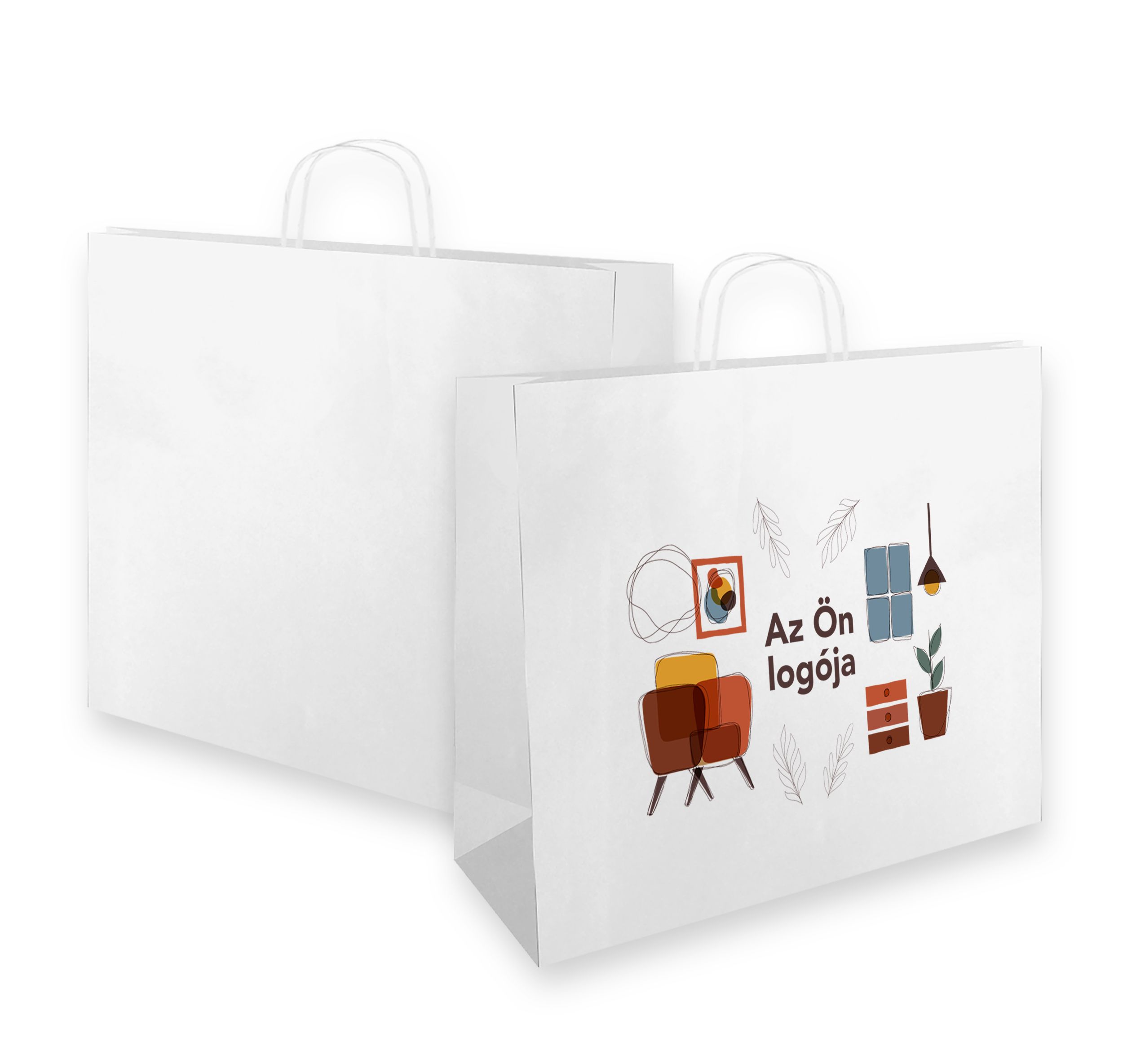 Sodrottfüles papírtáska 45*48*17 cm, fehér